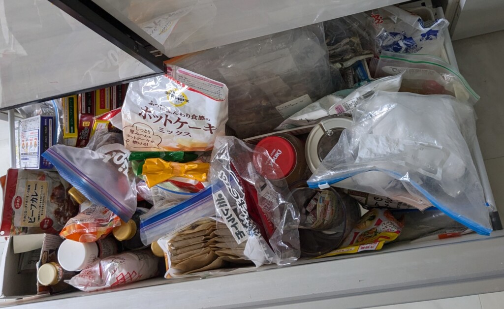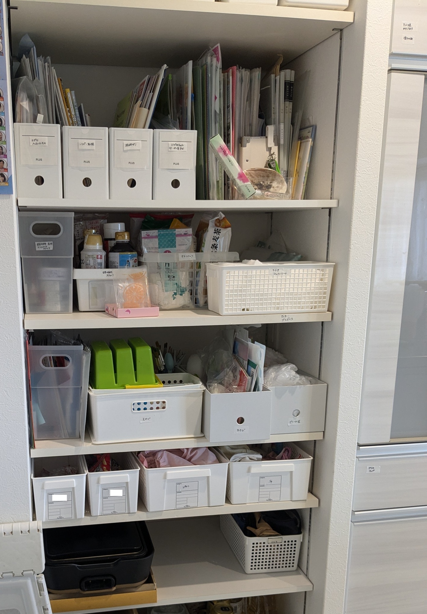 食品やストック品は背面のカップボード側に移動させ、食品は完全に分離させました。
