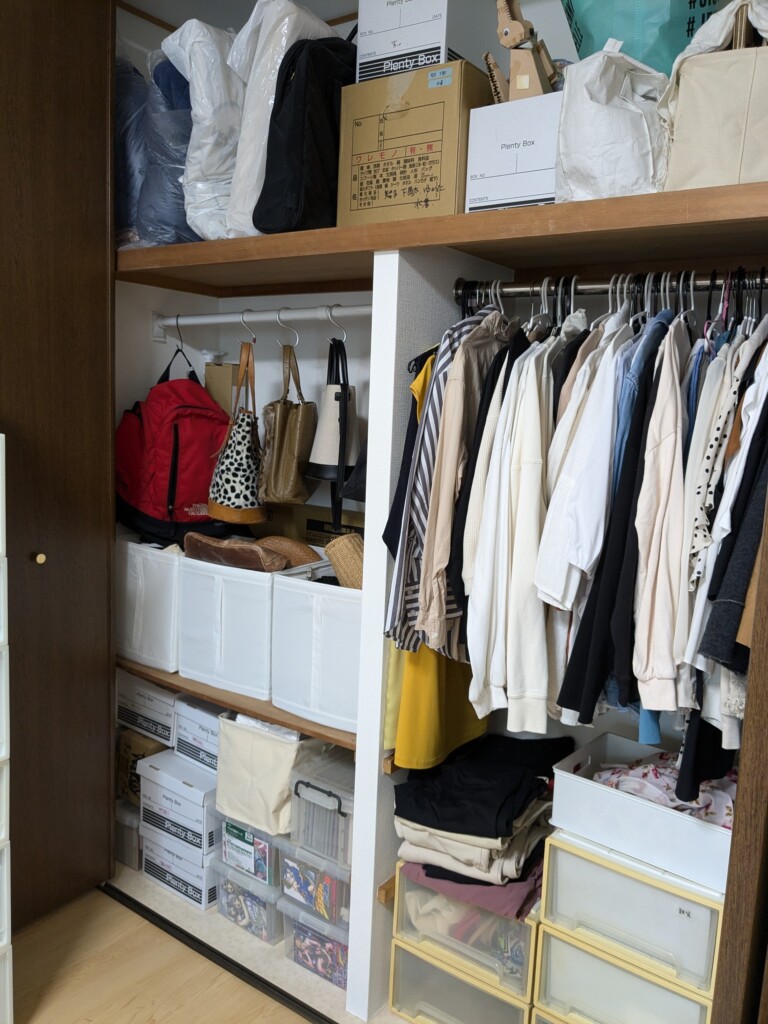 まずは収納内部の使い方を見直して部屋に床置きしているものを減らすところから始めました。
